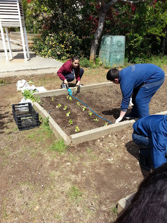 Hem plantat les següents hortalisses de planter: enciam maravilla, albergínies, pebroteres, tomaqueres i carabassoneres.